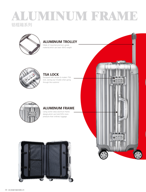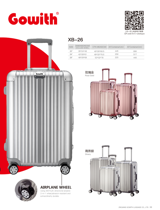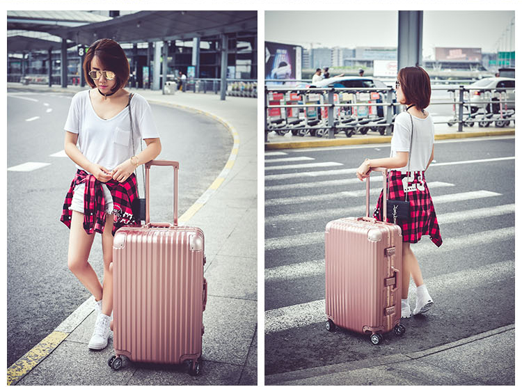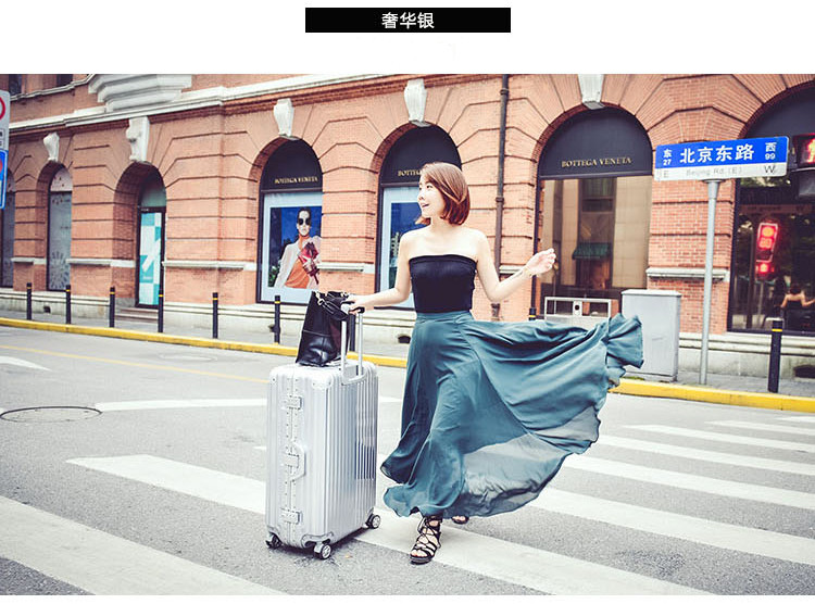 名稱:鋁框箱 型號:XB-26 尺寸:20英寸 35*24*49cm 24英寸 42*28*61cm 28英寸 48*29*69cm 材質(zhì):PC+ABS 鋁合金 顏色:商務銀 /玫瑰金